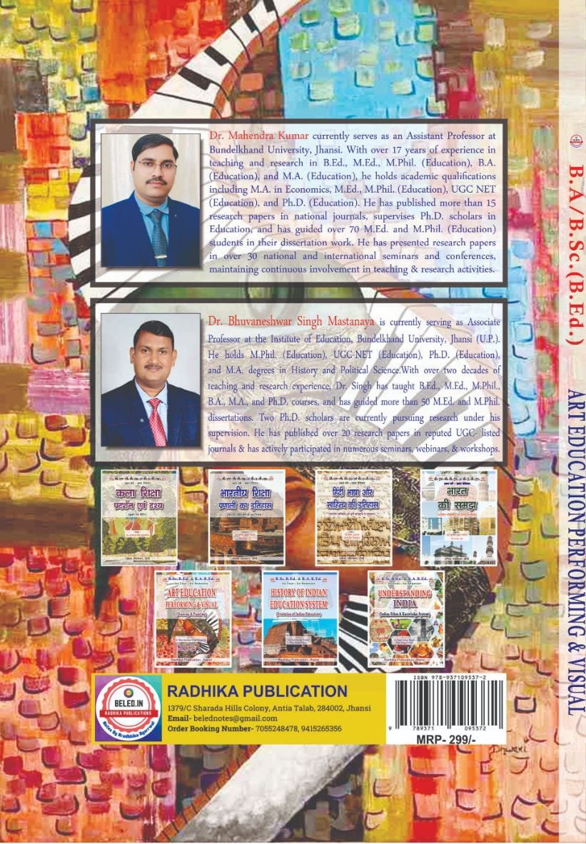 Sale! Previous Product Next Product Art Education (Performing and Visual) – Drawing and Painting : B.A. B.Sc (B.Ed) First Year: First Semester (English Medium Book)₹299 Original price was: ₹299.₹269Current price is: ₹269. Art Education (Performing and Visual) - Drawing and Painting : B.A. B.Sc (B.Ed) First Year: First Semester (English Medium Book) quantity Add to cartAdd to WishlistAdd to Wishlist SKU: 147-AE-FY-FSEM-ITEP-EM-BK Category: Beled Books Check Pincode Additional information Reviews (0) Additional informationWeight0.25 kgDimensions22 × 16 × 1.1 cm ReviewsThere are no reviews yet. Be the first to review “Art Education (Performing and Visual) – Drawing and Painting : B.A. B.Sc (B.Ed) First Year: First Semester (English Medium Book)” Cancel replyYour email address will not be published. Required fields are marked *Your rating *Rate…PerfectGoodAverageNot that badVery poor Your review *Name *Email * Save my name, email, and website in this browser for the next time I comment. Opens in a new window Tweet This Product Opens in a new window Share on Facebook Opens in a new window Pin This Product Opens in a new window Mail This Product Related products Quick View Sale! Quick ViewInnovations In Education – B.El.Ed Book for 2nd Year – 2nd Sem. (Only for L.U) English Medium ₹370 Original price was: ₹370.₹365Current price is: ₹365.Add to cart Add to WishlistAdd to Wishlist Quick View Sale! Quick ViewB.El.Ed Second Year Optional Question Bank: Economics I( Hindi Medium – For All Universities ) ₹120 Original price was: ₹120.₹108Current price is: ₹108.Add to cart Add to WishlistAdd to Wishlist Quick View Sale! Quick ViewMathematics II Optional Subject: B.El.Ed Third Year English Medium Book (For all Universities Except L.U) ₹499 Original price was: ₹499.₹436Current price is: ₹436.Add to cart Add to WishlistAdd to Wishlist